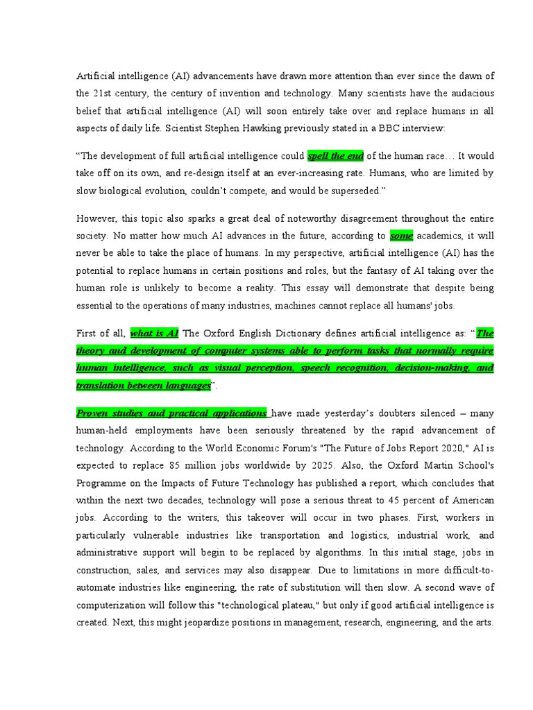 Argumentative Essay PDF Artificial Intelligence Intelligence (AI